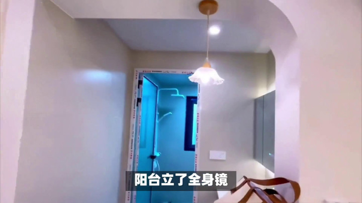 ·阳台立了全身镜,提亮空间还能整理形象。洗衣机、烘干机叠放,简约空间又普及洗衣效果,细节拉满。